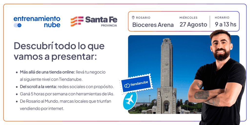 Con el compromiso de continuar fortaleciendo el ecosistema emprendedor del país, Tiendanube se alía con el Ministerio de Trabajo, Empleo y Seguridad Social de Santa Fe para traer por primera vez a Rosario Entrenamiento Nube. El evento, de acceso gratuito con previa inscripción, se llevará a cabo el miércoles 27 de agosto a las 09:00 AM en el Bioceres Arena (Cafferata 729, Rosario, Santa Fe). Se trata de una jornada de capacitaciones y charlas ideada para marcas que buscan escalar sus ventas, pero también para emprendedores que quieren dar el salto en el mundo digital.